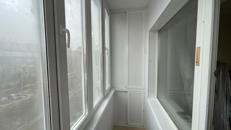 Специалисты компании САП реализовали очередной проект остекления балкона с внутренней отделкой и натяжным потолком.